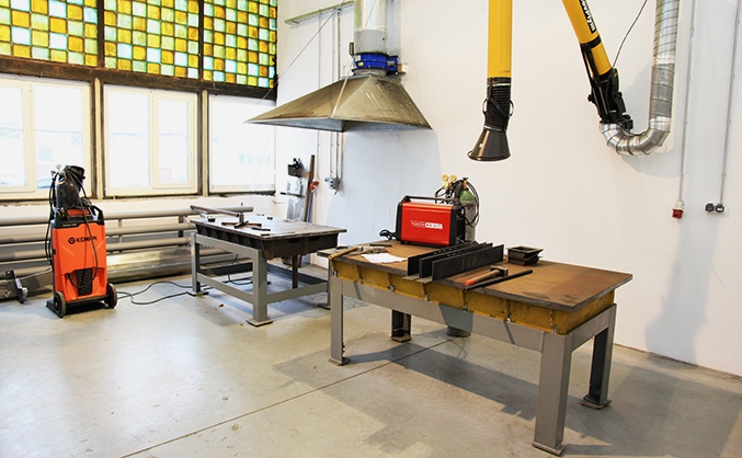 La hotte nécessaire au soudage n'est pas installée directement au-dessus des postes de travail. Dans de tels systèmes, il est préférable de monter des tables avec aspiration d'air à travers la grille.