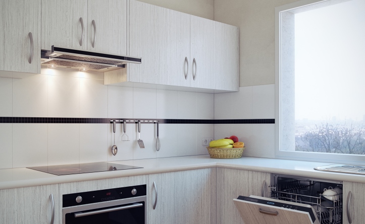 - Embarqué. L'appareil doit être intégré dans une armoire ou une autre boîte, qui est achetée dans un magasin ou fabriquée indépendamment. Il peut avoir un panneau coulissant qui augmente la zone fonctionnelle pendant le fonctionnement de la hotte. L'intégration de l'appareil dans une armoire présente des avantages de conception.