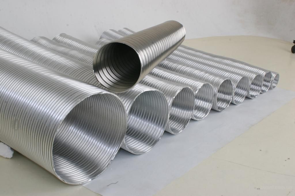 Les tuyaux ondulés en acier et en aluminium pour la ventilation sont classés comme matériaux semi-rigides. Ils sont utilisés dans les cas où il est nécessaire d'assembler le système à peu de frais, mais avec une haute qualité. À partir d'un tuyau ondulé, des structures de ventilation suffisamment solides et légères sont obtenues.