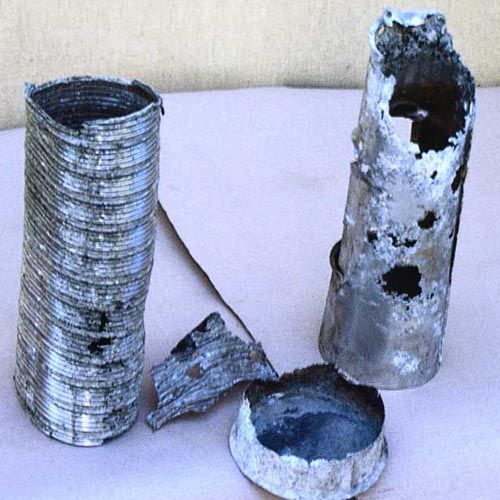 - Étant donné que l'aluminium fond à haute température, il est interdit d'installer une ondulation de ce matériau comme cheminée pour cheminées, poêles et chaudières à charbon et à bois. Il n'est pas conseillé de l'installer comme conduit d'air pour un chauffe-eau à gaz, où l'ondulation brûle progressivement et il y a un risque d'empoisonnement des personnes;