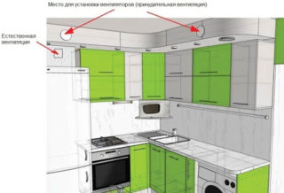 La hotte est calculée selon les normes SNiP et augmente jusqu'au débit total d'entrée :