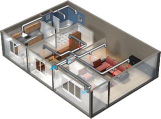 Lors de l'élaboration du projet, une autre caractéristique est prise en compte: les ouvertures d'échappement et d'entrée ne sont pas placées dans la même pièce. Il est important que l'afflux s'effectue par les pièces de vie : une chambre, un salon, une crèche, et la hotte se situe dans les lieux de service : une cuisine, une salle de bain, un WC. Grâce au respect de cette règle, les odeurs désagréables ne se répandront pas dans les pièces à vivre.