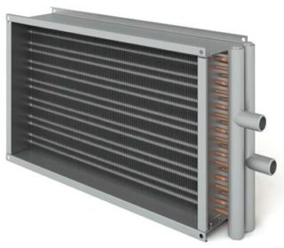 - L'eau. Ce sont des appareils dans lesquels l'eau circule dans des tuyaux. Il est utilisé dans les systèmes de ventilation des locaux publics et industriels. Il est nécessaire d'installer une unité de tuyauterie pour un chauffe-eau.