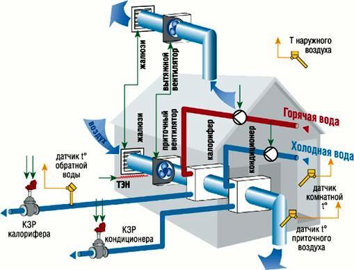 Quel que soit le schéma, l'installation de la hotte est requise. En maintenant un équilibre entre les flux d'air entrant et sortant, la température de conception dans la pièce est maintenue.