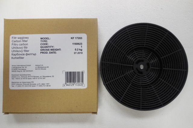 Le modèle KF17203 est le plus populaire parmi les acheteurs. L'échantillon d'un diamètre de 175 mm convient aux hottes Hansa OSP622H, OTP616WH, OSP622WH, OTP627WH, OTP6221WGH, OTP616IH, OTP6651BGH, OTP627IH. La durée de vie est de 6 à 12 mois si l'équipement d'échappement est allumé régulièrement.