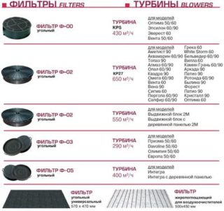 Les entreprises qui fabriquent des hottes de nettoyage de cuisine produisent différents types de filtres à charbon. Les entreprises proposent des appareils pour les hottes rectangulaires typiques et pour les options de coin et de mur. De nombreux modèles sont équipés de filets récupérateurs de graisse, ils comprennent plusieurs nettoyeurs à charbon dans le kit.