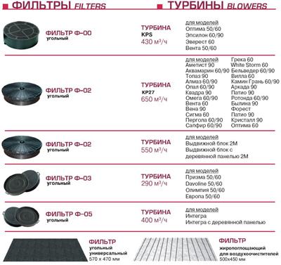 Les produits de la société grecque Elikor, espagnole Cata, italienne Elika sont vendus dans presque tous les magasins. Leur haute qualité et leur coût abordable les ont rendus populaires.Les plaquettes carbone sont changées tous les 4 à 6 mois, même si la hotte est utilisée à charge constante. Un bon travail est illustré par le fait qu'il n'y a pas de graisse sur les murs et les objets adjacents.