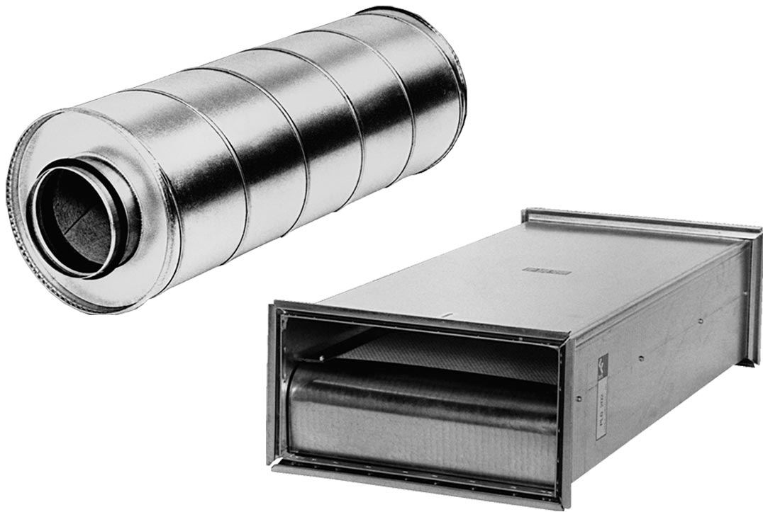 Les silencieux réduisent le bruit aérodynamique des ruisseaux ; de par leur conception, il existe des types à plaques et tubulaires. Ils présentent une grande zone incurvée de surfaces isolantes contre lesquelles les vibrations et le bruit sont amortis. Installé entre le ventilateur et le début du pipeline.