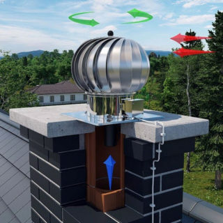 Ce type de déflecteur se compose d'une tête de turbine qui tourne et d'une base fixe. Les éléments du capuchon sont en matériau mince. Grâce à cela, le tambour à pales commence à tourner même par vent faible.
