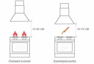 - hauteur au-dessus du poêle - 70 cm de l'électricité et 80 cm du gaz;
