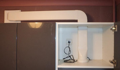 - Conduit d'air. Il s'agit d'un tuyau qui dépollue la rue ou le puits commun d'un immeuble à appartements. Il n'y a pas de conduits d'air dans les appareils de type recirculation, l'air passe à travers des filtres mécaniques sur la partie supérieure du boîtier.