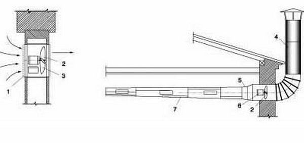 Un inconvénient sérieux de ce type de ventilation par aspiration est le caractère imprévisible et incontrôlable de son fonctionnement. Le mouvement de l'air se produit en raison de la différence entre les indicateurs d'air aux extrémités des tuyaux d'échappement. Par conséquent, dans certaines conditions, il peut n'y avoir aucune poussée.