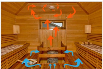 Pour les bains et les saunas, des équipements haute température avec un indice de protection IP 42 et supérieur sont utilisés. Cela empêche l'humidité de pénétrer dans la structure. Les appareils sont installés au plafond ou au mur. Vous pouvez l'utiliser pour régler la température dans les pièces adjacentes.
