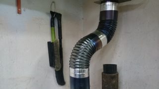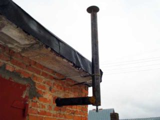Une fois le tuyau de dérivation sorti dans la rue, un élément est placé dessus, ce qui place la cheminée en position verticale. La partie extérieure est isolée, un champignon protecteur est placé sur le tuyau lui-même. Des portes sont installées aux plis pour l'inspection et le nettoyage de la structure.