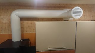 Dans le premier cas, une grille avec clapet anti-retour est située sous l'entrée du conduit d'air posé depuis la hotte de cuisine vers un conduit de ventilation séparé. Cette méthode est utilisée lorsqu'il y a de l'espace libre au-dessus des armoires murales.