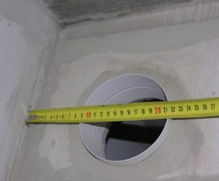 - Le diamètre de travail des conduits d'air montés est déterminé. La taille du ventilateur est prise en compte, qui dépasse les dimensions de la mine de 10-15 cm.