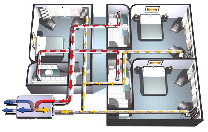 À la suite du calcul des indices de ventilation, il convient d'obtenir une structure qui laisse passer le volume requis de flux frais pour améliorer l'atmosphère interne. Dans le même temps, les pertes de charge dans la ligne sont minimisées et le microclimat répond aux normes sanitaires en matière d'humidité, de pollution de l'air et de niveau sonore du fonctionnement des conduits d'air.