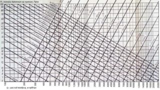 - trouver sur le monogramme le point d'intersection du flux d'air déplacé en une heure et la ligne de vitesse optimale pour un tronçon donné ;