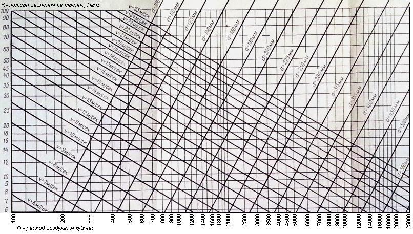 Une erreur dans la sélection des sections des pièces figurées peut entraîner une mauvaise circulation du flux d'air, même avec une conception sans erreur. De nombreux fabricants donnent des nomogrammes dans une note explicative du projet. Il s'agit de calculs graphiques d'une fonction à plusieurs variables, présentés dans la littérature normative.