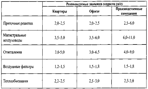 La vitesse affecte le niveau de bruit, par conséquent, lors du choix des paramètres de la canalisation, cette caractéristique doit être comparée à celle tirée des tableaux réglementaires.