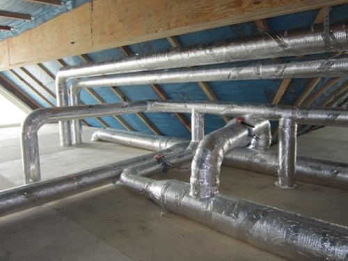 Les conduits de ventilation sont constitués d'une section ronde, rectangulaire, d'acier, de plastique ou d'une feuille métallisée. Au stade de la conception, la surface des conduits d'air et des raccords est calculée afin de garantir les indicateurs standards de pression et de vitesse d'air, pour assurer des performances acoustiques optimales.