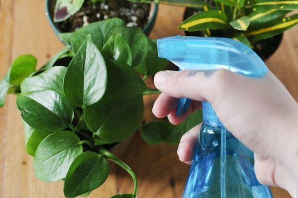 L'humidification est combinée avec la pulvérisation des plantes d'intérieur.