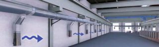 Pour les grands locaux industriels, le plus souvent, un système de ventilation est conçu, mais deux. C'est vrai pour les entrepôts, les hangars, les grands garages. Dans ce cas, la charge sera divisée en deux, par conséquent, la vitesse de l'air doit être sélectionnée de manière à assurer 50% du volume total de mouvement de la masse d'air.