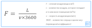Une fois que vous avez une section transversale et un débit d'air connus, vous pouvez calculer sa vitesse. Pour cela, la formule est utilisée V = L / 3600 * S, où :