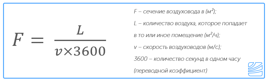 Pour calculer la vitesse à laquelle l'air passera à travers le tuyau, vous devez déterminer la section transversale. La formule suivante est utilisée pour le calcul S = L / 3600 * V, Où: