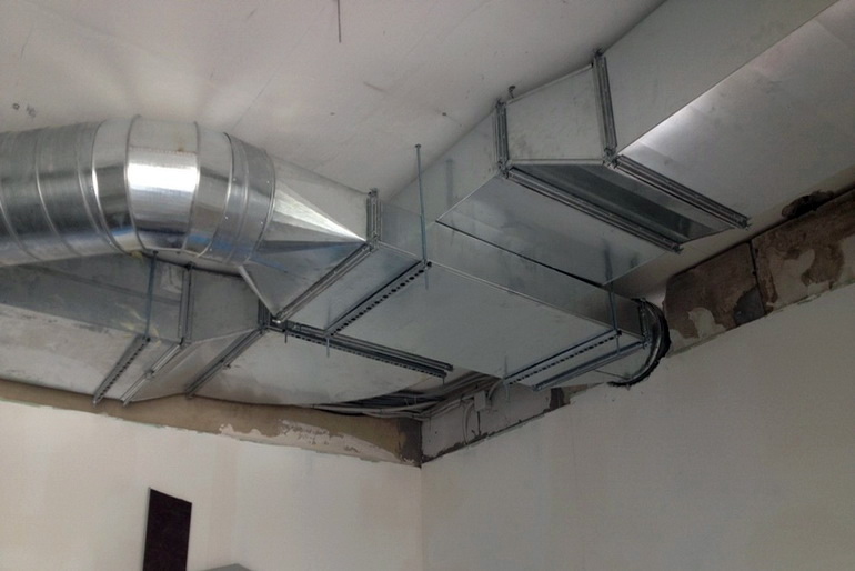 Les conduits d'air ronds sont le plus souvent utilisés dans les grandes usines. Cela est dû au fait que leur installation nécessite de nombreux mètres carrés d'espace au sol. Pour les bâtiments résidentiels, les sections rectangulaires sont les plus appropriées; elles sont également utilisées dans les cliniques, les jardins d'enfants.