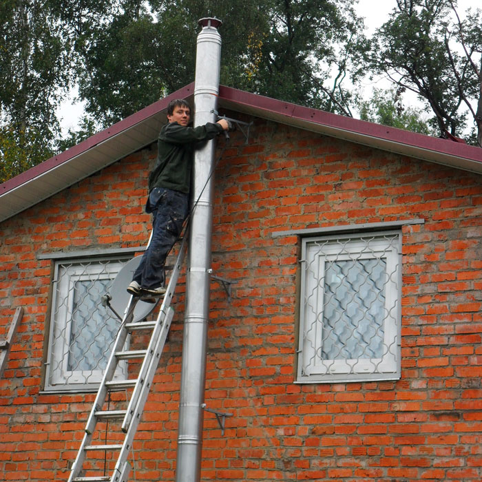 - Nettoyer la cheminée de la saleté et de la suie. Vous devez d'abord nettoyer le canal de la suie. Après l'isolation, la température dans le tuyau augmentera, ce qui peut entraîner un incendie et un incendie. Ensuite, vous devez nettoyer la surface extérieure des fragments instables, de la saleté et de la végétation.