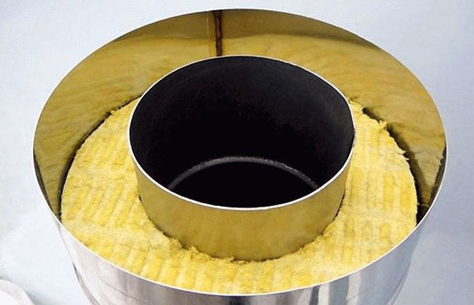 - Couche isolante. Sert à créer une barrière d'isolation thermique entre le canal intérieur et la coque extérieure. D'une part, le remplissage évite la surchauffe des structures en contact avec la cheminée. D'autre part, le canal intérieur n'entre pas en contact avec l'air froid de la rue. Grâce à cela, le tuyau ne refroidit pas, le tirage s'améliore, la formation de condensation et de suie est exclue.