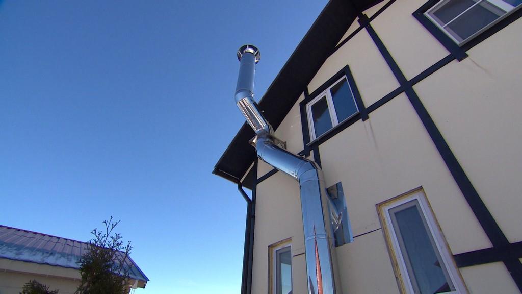 Idéalement, il est nécessaire de créer une disposition de cheminée où le tuyau de raccordement horizontal aurait une courte longueur. La structure d'une telle cheminée comprend un élément appelé "portail", il permet de contrôler le processus de tirage. Comme dans les éléments sortants du type précédent, le col est recouvert d'un capuchon spécial. Dans le même temps, les parties du tube sont fixées, en maintenant une distance d'un mètre les unes des autres, créant un passage de cheminée à travers le mur d'une maison en bois.