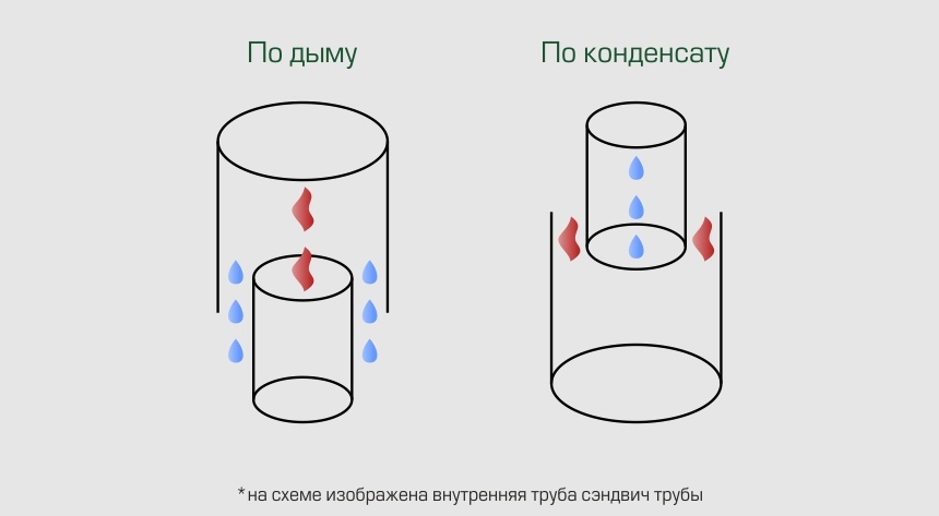 La sortie d'une telle cheminée à travers le mur est réalisée par des tés en acier inoxydable avec isolation thermique. Grâce à eux, l'appareil est connecté à la cheminée, après quoi les tés seront utilisés comme pièces de sortie pour les particules de condensat, le nettoyage et la vérification des détails de construction. Des tuyaux de dérivation ou des fenêtres d'inspection sont placés au bas ou sur le côté des tés, qui sont droits, préfabriqués ou pleins. Pour l'installation complète de la cheminée, des supports sont utilisés; dans certains cas, des attaches auxiliaires peuvent être nécessaires. Ils sont nécessaires pour donner à la partie structurelle de la résistance de charge.