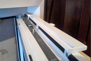 - Entrées d'air à fentes - constituées d'un ou de deux blocs. La longueur de la fente est de 17 à 40 cm, la largeur est de 12 à 16 mm, ce qui assure un volume d'entrée suffisant d'environ 20 m3/h. Pour installer des modèles à deux blocs, vous devrez fraiser le cadre de la fenêtre. Une simple soupape d'admission à fente est installée à la place de la partie joint. Le couvercle d'entrée protège contre les insectes, la poussière, l'eau de pluie entrant dans la maison. Un système de réglage est prévu à l'intérieur de la pièce.