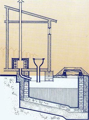 Dans les temps anciens, la ventilation des latrines n'existait pas, mais dans les maisons en rondins, le poêle russe servait de moyen de purification naturelle de l'air. L'air stagnant, ainsi que les odeurs de poubelle, étaient aspirés dans le ventilateur du poêle et évacués par la cheminée.