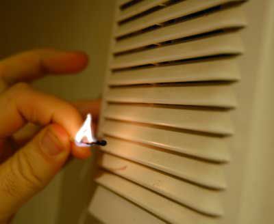 Après avoir installé la ventilation de la salle de bain, il est temps de vérifier si elle fonctionne correctement. Allumez une allumette ou une bougie et rapprochez-la de l'évent. Avec une bonne traction, la flamme flottera et déviera vers le trou. La force de traction ne devrait pas diminuer de manière significative même avec les évents fermés.