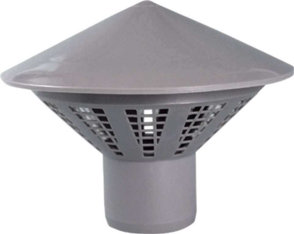 - La tête du tuyau est recouverte d'une hotte de ventilation pour le système d'égouts. La hotte de ventilation égalise la pression dans le système d'égout, protège le système de la pluie et de la neige. Contrairement aux déflecteurs, les hottes d'égout résistent au givrage pendant la saison froide.