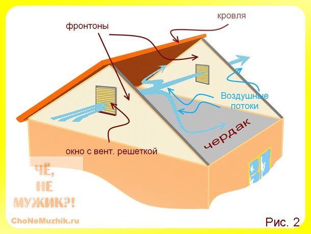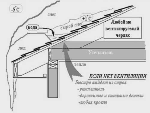 - La chaleur s'échappe de la maison par les grilles de ventilation du grenier. On pense que le bâtiment se refroidira plus rapidement. Mais le plus souvent le problème réside dans une mauvaise isolation thermique des murs ou des plafonds. À propos, l'air chaud et humide pénètre dans le grenier par un plafond mal isolé. Dans quel danger nous dirons dans le prochain chapitre;