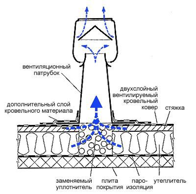 L'aérateur de toiture est un type de ventilation moderne et pratique. C'est un tuyau recouvert d'un capuchon sur le dessus. Les aérateurs éliminent la vapeur, l'humidité et l'air stagnant, assurant la ventilation d'un grenier froid dans une maison privée. Les aérateurs sont installés sur les pentes des toits, où le mouvement de l'air est assuré par la différence de température et de pression, remplaçant les évents de faîte. Les aérateurs sont continus et ponctuels. Les aérateurs ponctuels sont équipés de ventilateurs et garantissent une bonne circulation de l'air.Extérieurement, ils ressemblent à des champignons.