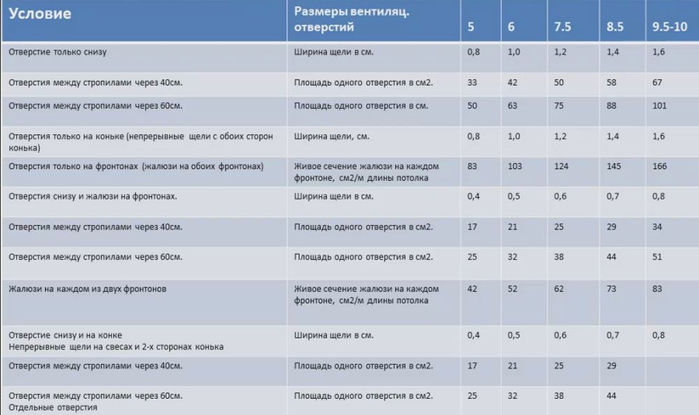 L'excès de la surface des évents est également indésirable, ainsi qu'un inconvénient. Les trous trop grands peuvent recevoir de la neige et de la pluie, car ce sont les endroits les plus vulnérables du toit, dont il faut se souvenir.