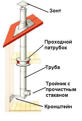 Le capot est également fait. Un parapluie est fixé à l'extrémité supérieure de la cheminée pour la protéger de la pluie et de la neige. Certains artisans installent également un clapet anti-retour sur la cheminée afin que l'air ne pénètre pas dans la maison par celle-ci.