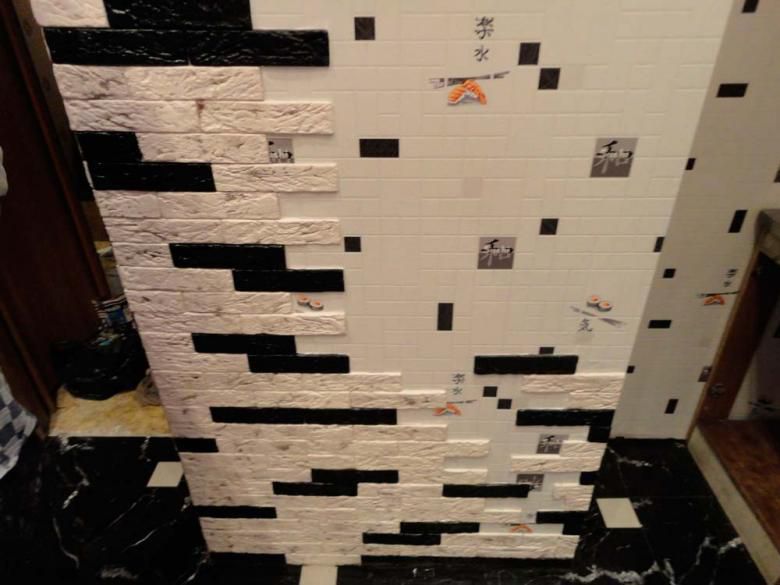 La boîte de ventilation dans la cuisine peut être réalisée avec un pilier en brique ou en pierre. Les carreaux de plâtre imitant la pierre sont fixés avec de la colle à carrelage ou des clous liquides. Vous pouvez couvrir toute la boîte en continu ou seulement certaines de ses sections.
