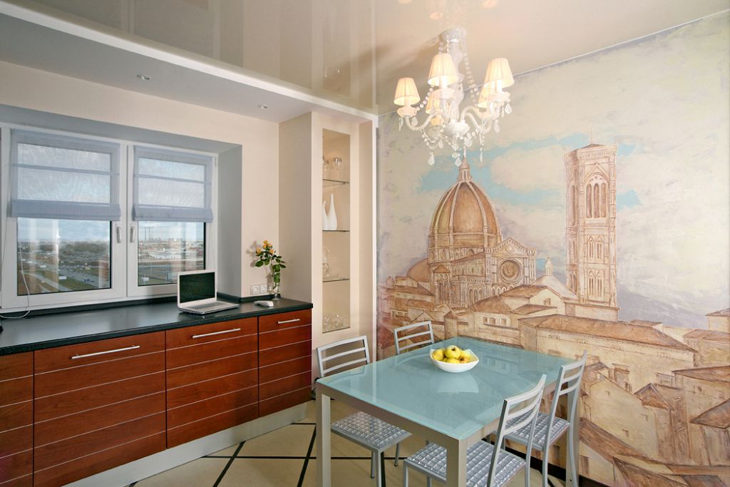 La présence d'un puits de ventilation pour de nombreux propriétaires rend difficile de jouer avec la conception de la cuisine. Comment ranger les meubles ?