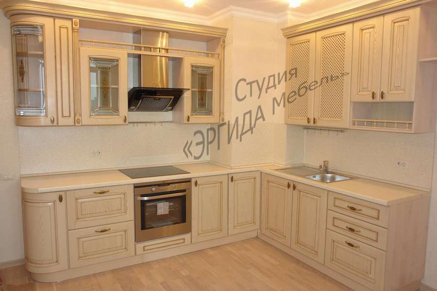 Un bon meuble cache les défauts de la cuisine avec une saillie pour la ventilation sur la photo.
