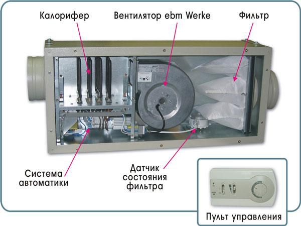 - Filtres. Situé dans les conduits d'air. Dans les systèmes de ventilation d'alimentation et d'extraction des appartements, des filtres grossiers avec remplisseur de charbon sont généralement utilisés;
