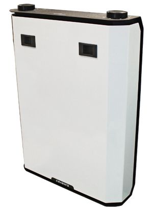 L'unité de ventilation Marta fabriquée en République tchèque est un boîtier compact avec deux boutons de commande : chauffage de l'air et intensité du ventilateur.