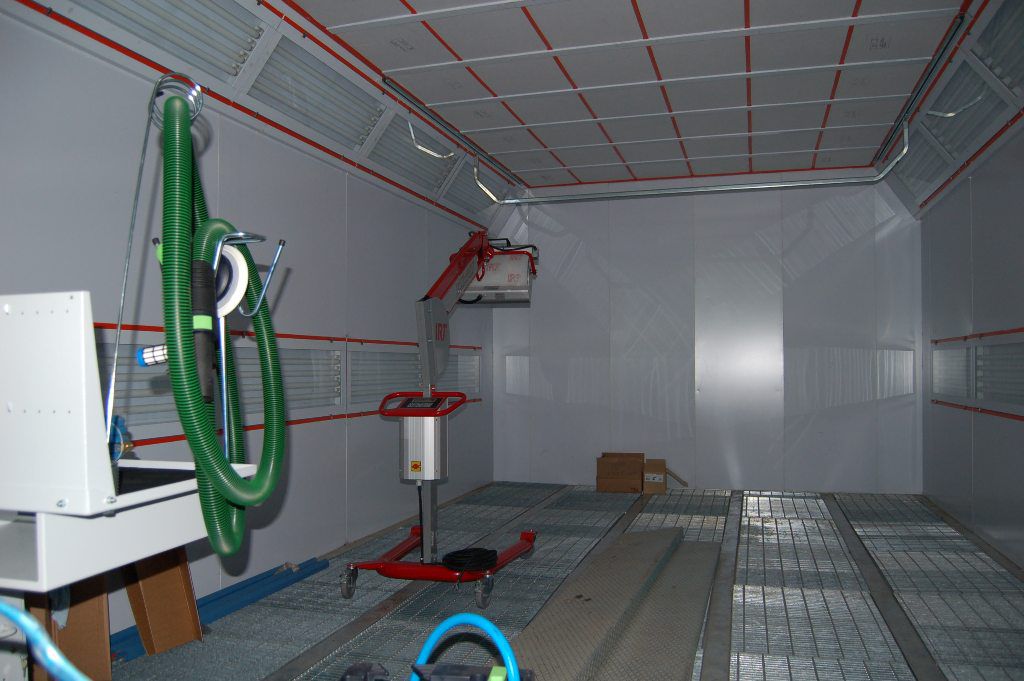 Dans les salles de peinture, un système de ventilation d'alimentation et d'extraction est organisé, renforcé d'une hotte supplémentaire dans la partie inférieure de la pièce.