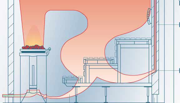 Les portes inférieures ne se ferment pas pendant l'allumage. L'air chaud sera aspiré par les parties supérieures, retombera partiellement dans la chambre de combustion et se réchauffera à nouveau. Ce phénomène est appelé emballement du four. Après avoir atteint une combustion intensive, les portes inférieures sont fermées, tandis que les portes supérieures sont laissées ouvertes.
