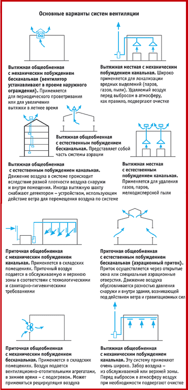 Si la ventilation typique d'une pièce à tirage naturel n'est pas en mesure de créer le microclimat requis, l'induction mécanique est utilisée. Par exemple, il n'est pas recommandé d'utiliser l'aération pour la ventilation des entrepôts avec stockage de nourriture. L'air extérieur est pollué, et il est souvent impossible de le nettoyer.